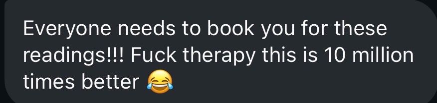 - Intuitive Reads → energetic clarity and guidance from Source and your Higher Self in one private 60-minute session