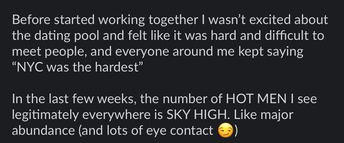 Weekly check-ins: You’ll submit a form each week recapping the highs, the lows, and everything in between. This is also your opportunity to ask questions about reflections and anything else you want intuitive clarity on; I’ll respond with voice memo feedback.