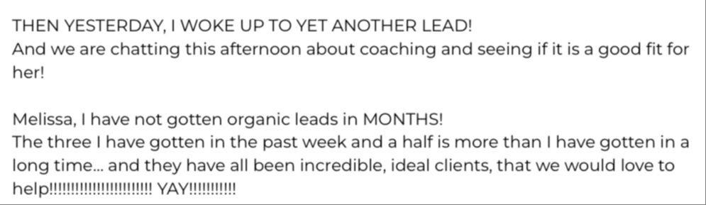 Slack: Inside you’ll be a part of a sisterhood community where everyone is walking a similar path. Additionally, in any group setting, you’re an energetic match to see & hear messages, tools, and insight – so you’re getting even more resources inside the group. You’ll also have message access to me inside Slack as well.