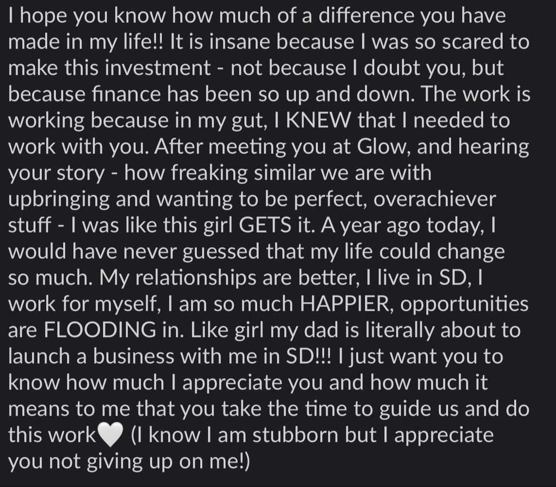 - Scientifically precise intuitive reads where I pinpoint your specific energetic blocks + how to shift them