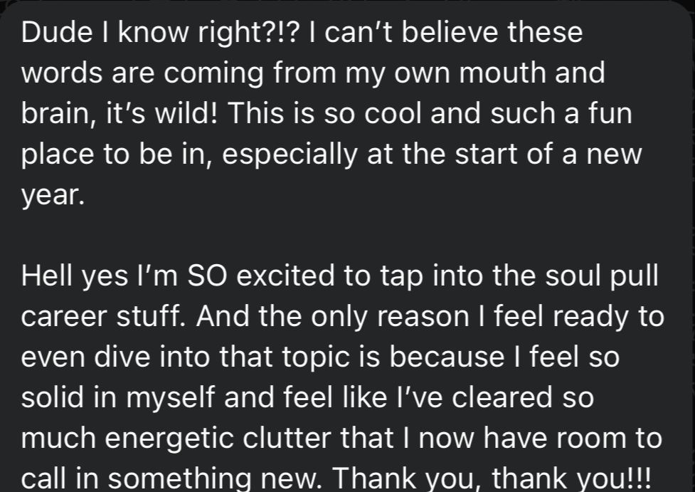 i've been able to pinpoint the exact root causes keeping my clients stuck, find where they're energetically blocking themselves from receiving what they desire, and then using neuroscience to start reprogramming their brains... so they can feel incredible on a daily basis & get back to creating everything they want - in career, relationships, finances, health, and more.